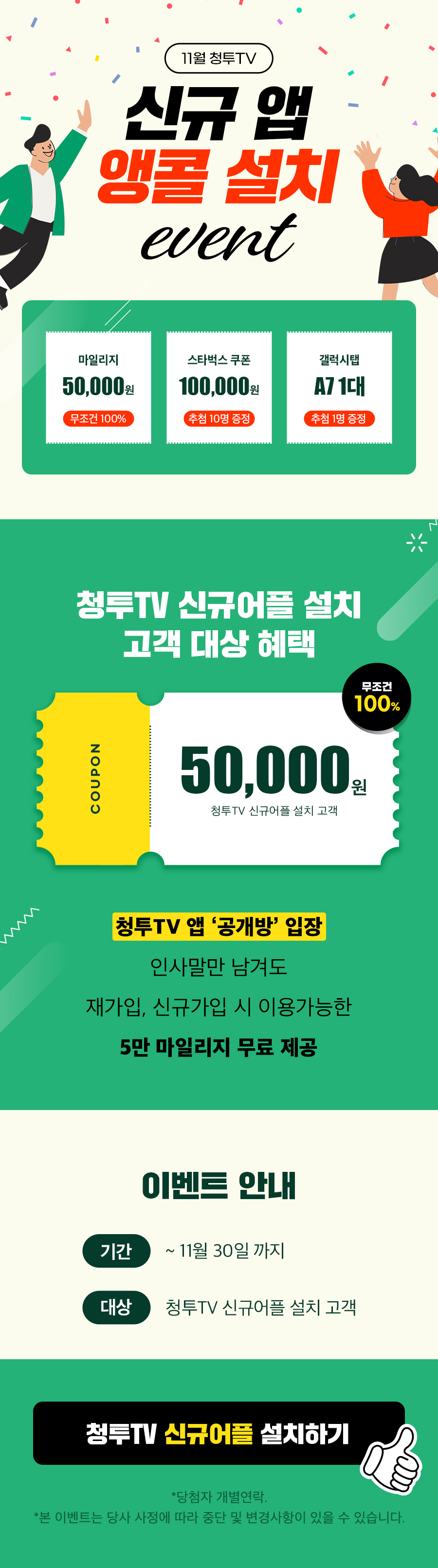 | [이벤트] 11월 청투TV 앱 설치 앵콜 프로모션 | |||