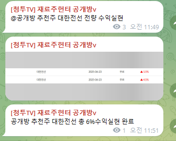 공개방 추천주 대한전선 총 6%수익실현 완료