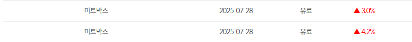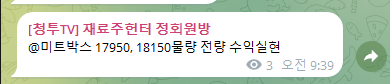 정규방 집중매집종목 미트박스 +7.2% 수익실현완료