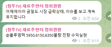 정규방 집중매집종목 블루엠텍 총 +19.7% 수익실현완료