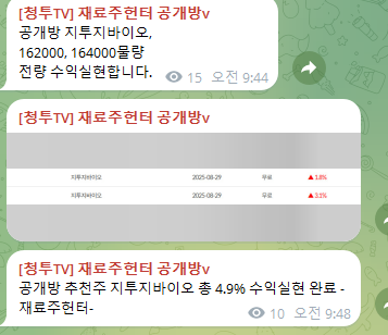 공개방 추천주 지투지바이오 총 4.9% 수익실현 완료