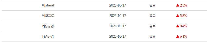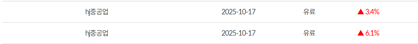 정규방 전일 집중매집 hj중공업 총 +9.5% 수익실현 완료