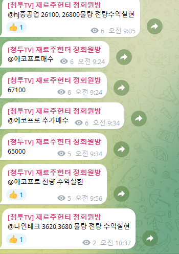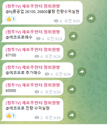 정규방 hj중공업 수익실현후, 진입한 에코프로 총 +8.3% 수익실현 완료