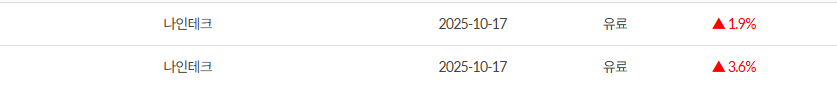 정규방 나인테크 총 +5.5% 추가수익실현 완료