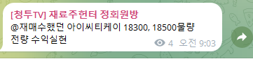 정규방 재매수했던 아이씨티케이 총 +10.9% 수익실현 완료 -재료주헌터-