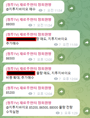 정규방 금일집중매집종목 "지투지바이오" 총 +18.9% 수익실현 완료 -재료주헌터-