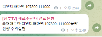 정규방 금일 집중매집 디앤디파마텍 총 +12.9% 수익실현 완료 -재료주헌터-