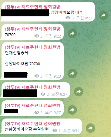 금일 정규방 수익실현 현황