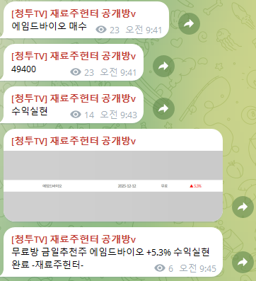 무료방 금일추천주 에임드바이오 +5.3% 수익실현 완료