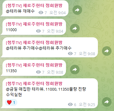 정규방 금일 재매집한 테라뷰, 총 +11.3% 수익실현 완료 -재료주헌터-