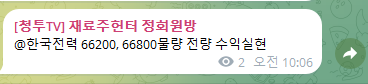 정규방 전일 매집했던 한국전력 총 +7.5% 수익실현완료 -재료주헌터-
