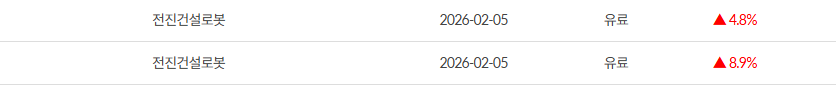 02.05 전진건설로봇 +13.7%, 재매수한 전진건설로봇 +7.9%, 총 +21.6% 수익실현 완료
