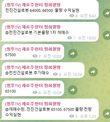 정규방 전진건설로봇 총 +13.7% 수익실현 완료 -재료주헌터-