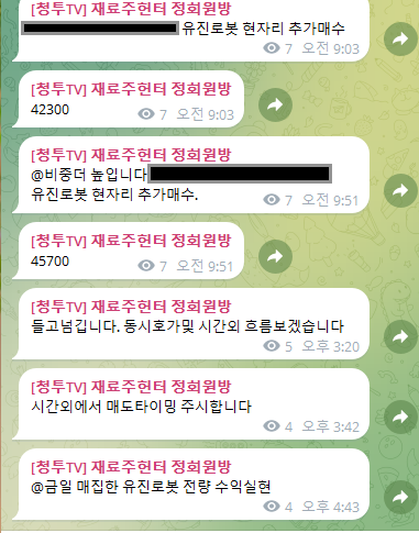 정규방 금일 집중매집종목 유진로봇 총 +15.5% 추가수익실현 완료 -재료주헌터-