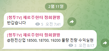 정규방 집중매집종목 한전산업 총 +19.3% 수익실현 완료 -재료주헌터-