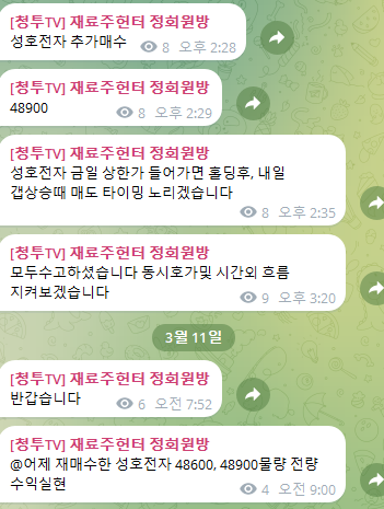 정규방 어제 집중재매수한 성호전자 총 +17.5% 수익실현 완료 -재료주헌터-