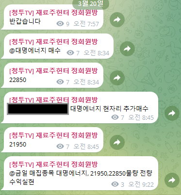 정규방 오전 집중매집 대명에너지 총 +14.3% 수익실현 완료-재료주헌터-