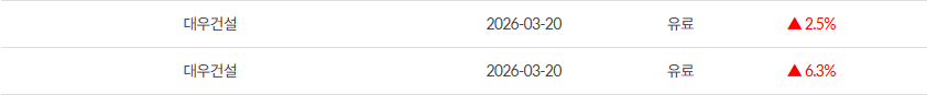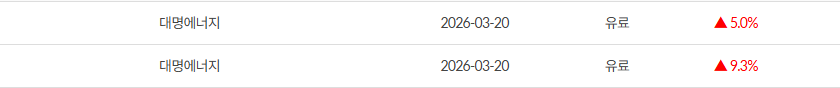 03.20 대명에너지 +14.3%, 대우건설 +8.8% 수익실현 완료
