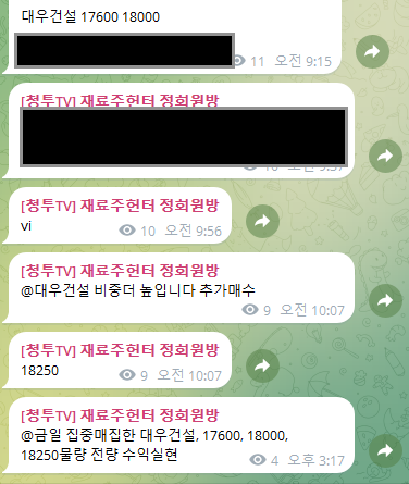 정규방 금일 집중매집종목 대우건설 총 +25.2% 수익실현완료 -재료주헌터-