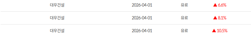 04.01 대우건설 +25.2% 수익실현 완료