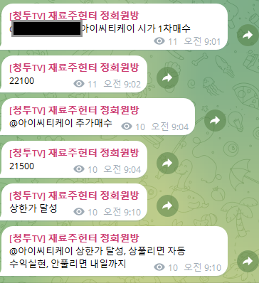정규방 엑스게이트 수익실현후 진입한 아이씨티케이, 상한가 달성 -재료주헌터-