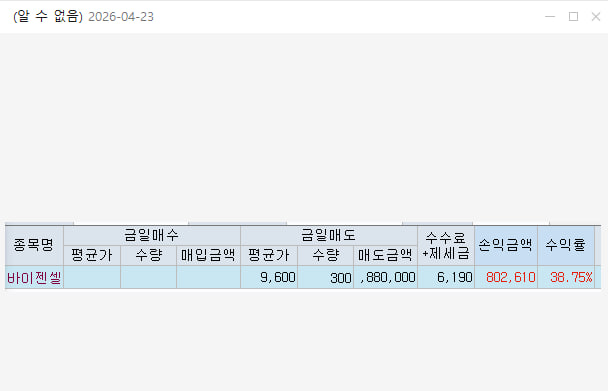 보유중이던 바이젠셀 상한가 9600원 매도 완료 축하합니다