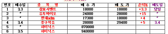 보는봐와 같이 3번이나 추천했고 백만원 정도에서 2번 추천더 했었습니다 총 5번 정도 매수 추천햇는데 한번도 매수 안하신분도 계실겁니다 ㅎㅎ 저는 왕창 여러번에 걸쳐 매수했습니다 대박 축하드리고 계속 보유합니다