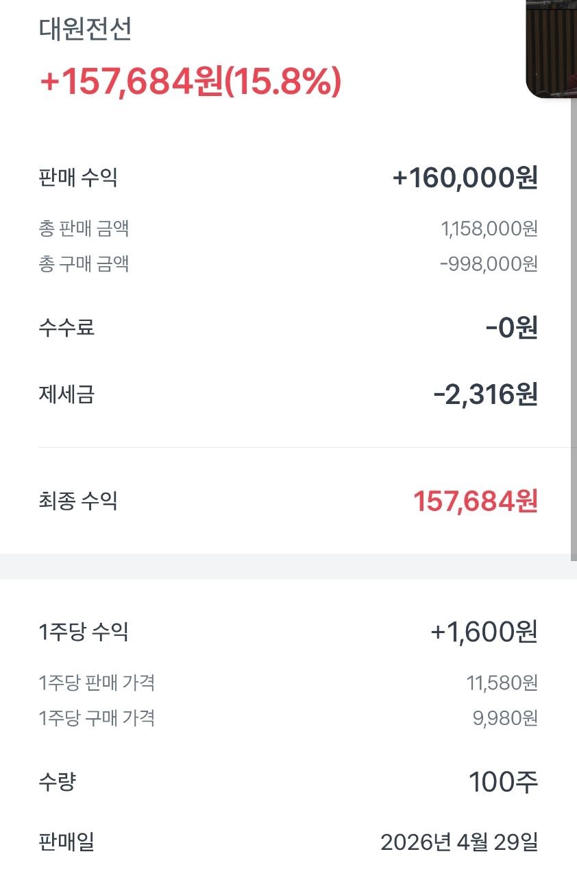 [한대표] 15.8% 수익이네요 축하합니다